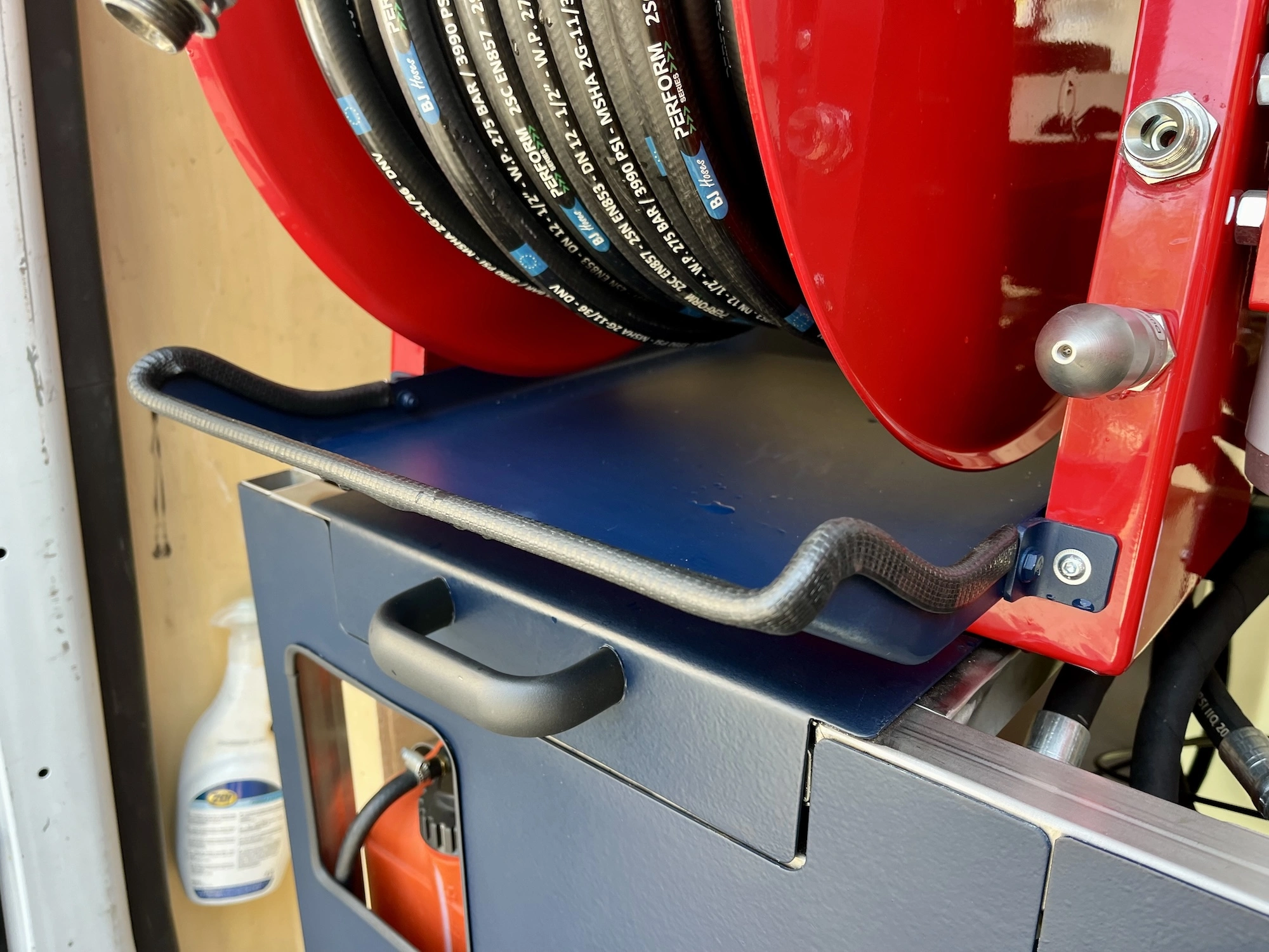 Ce bac de récupération d'eau, positionné sous l'enrouleur, capte efficacement les eaux usées et autres débris, préservant ainsi la machine de tout encrassement. Il assure une propreté et une durabilité accrues en maintenant un environnement de travail nettoyé et organisé.
